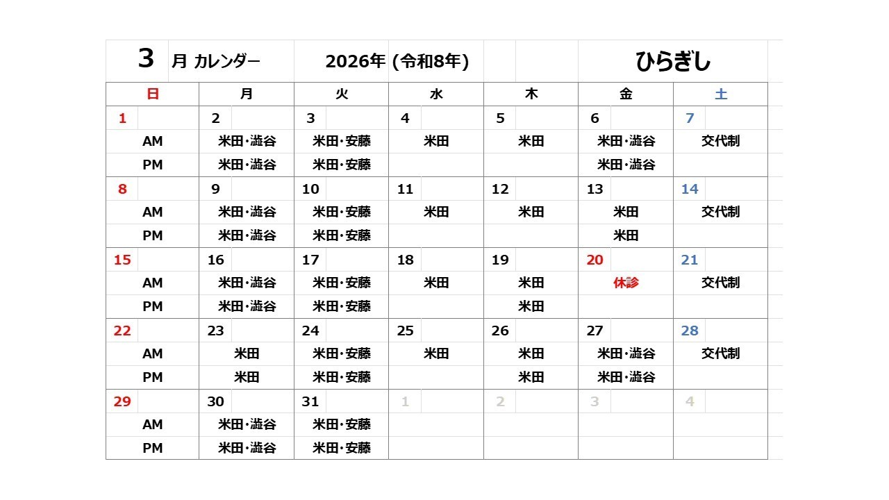 (応援医師が診察に入る場合もございます)